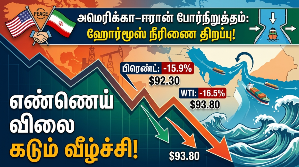 அமெரிக்கா மற்றும் ஈரான் இடையே நிபந்தனையுடன் கூடிய இருவார கால போர்நிறுத்த ஒப்பந்தம் எட்டப்பட்டதைத் தொடர்ந்து, உலகளாவிய ரீதியில் மசகு எண்ணெய் விலைகள் கணிசமாக குறைந்துள்ளன. இந்த ஒப்பந்தத்தின் ஒரு பகுதியாக முக்கியமான ஹோர்மூஸ் நீரிணை மீண்டும் திறக்கப்பட உள்ளதாக அறிவிக்கப்பட்டுள்ளது.