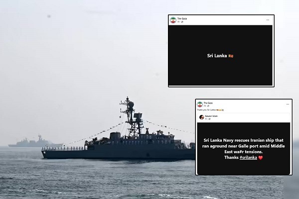 மேலும், மத்திய கிழக்குப் போர் பதட்டங்களுக்கு மத்தியில் காலி துறைமுகத்திற்கு அருகே தத்தளித்த ஈரானிய கப்பலை இலங்கை கடற்படை மீட்டது என்றும் அவர்கள் பதிவிட்டு நன்றி தெரிவித்துள்ளனர்.