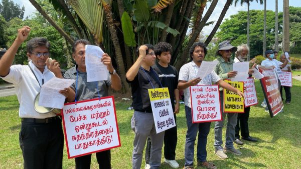 ஈரான் மீதான அமெரிக்க – இஸ்ரேலியப் போரை நிறுத்து, ஐஎம்எப் சிக்கன வெட்டுகள் வேண்டாம், கல்விக்கும் சுகாதாரத்திற்கும் நிதி ஒதுக்கு, பல்கலைக்கழகங்களில் பேச்சு மற்றும் ஒன்றுகூடல் சுதந்திரத்தைப் பாதுகாத்திடு, சோலிச அனைத்துலக வாத போர் எதிர்ப்பு இயக்கத்தை கட்டியெழுப்பு போன்ற வாசகங்கள் அடங்கிய பதாதைகளை ஏந்தியவாறு போராட்டத்தை முன்னெடுத்தனர்.