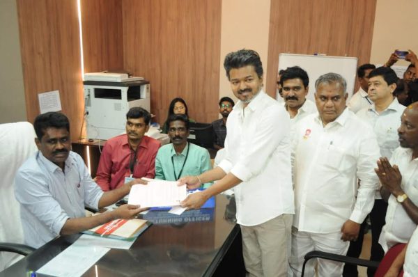 இதைத் தொடர்ந்து ஏப்ரல் 2ஆம் திகதியான இன்று திருச்சி கிழக்கு தொகுதியில் வேட்பாளராக போட்டியிடுவதற்கான வேட்பு மனுவை விஜய் தாக்கல் செய்தார்.
