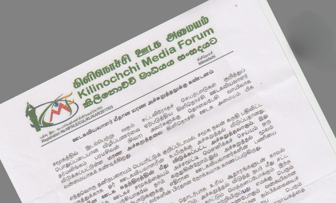 ஊடகவியலாளருக்கு மரண அச்சுறுத்தல்: கிளிநொச்சி ஊடக அமையம் கடும் கண்டனம்.!