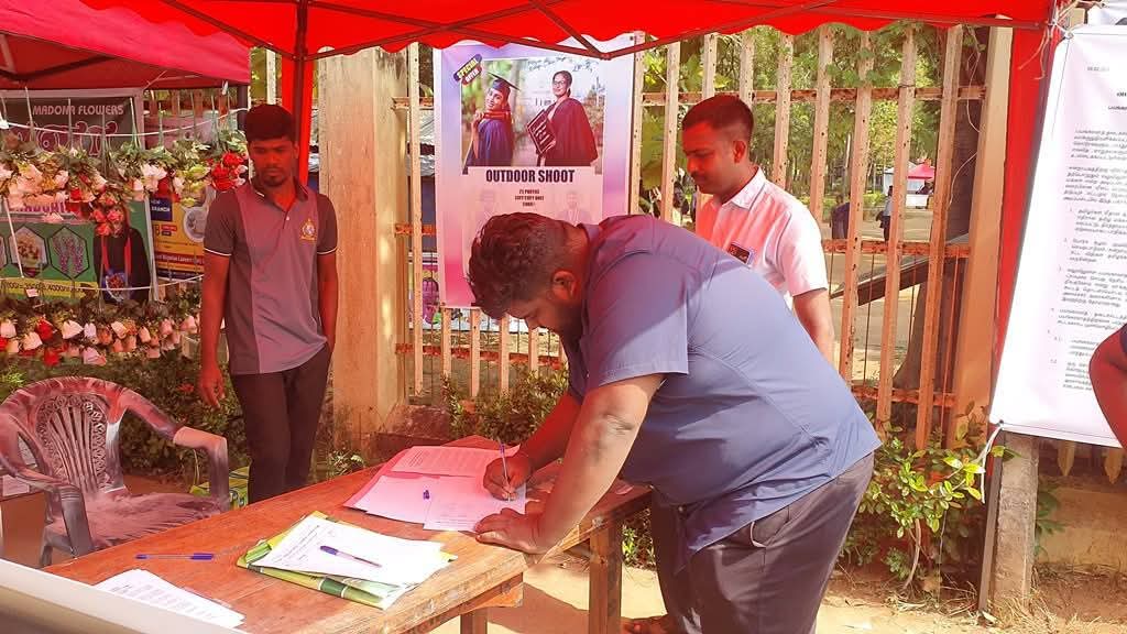 நேற்று (19) முதல் எதிர்வரும் ஞாயிற்றுக்கிழமை வரை நான்கு நாட்கள், பல்கலைக்கழக வளாகத்தினுள் உள்ள உள்ளக விளையாட்டரங்கில் 12 அமர்வுகளாக கையெழுத்துகள் சேகரிக்கப்படவுள்ளன.