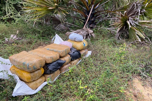 பளை இராணுவ அதிகாரிகளுக்கு கிடைத்த இரகசிய தகவலின் அடிப்படையில், பளை பொலிஸ் பிரிவிற்குட்பட்ட மாசார் சோரன்பற்று காட்டுப் பகுதியில் மறைத்து வைக்கப்பட்டிருந்த 23 கிலோ 550 கிராம் கேரள கஞ்சா மீட்கப்பட்டுள்ளது.