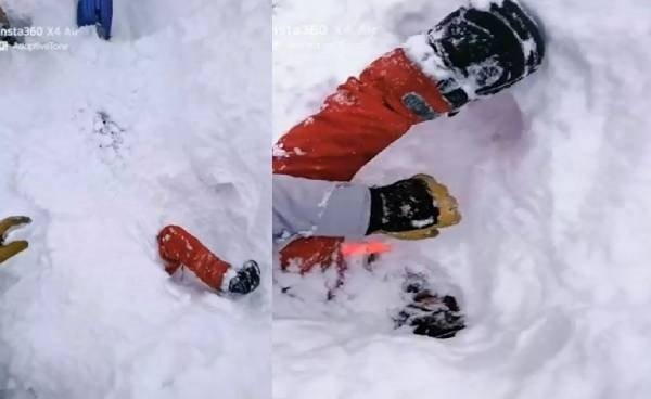 சுவிட்சர்லாந்தில் பனிச்சறுக்கு விளையாடிக்கொண்டிருந்த ஒருவர், சற்று தொலைவில் பனிக்குள்ளிருந்து கை ஒன்று எட்டிப்பார்ப்பதைக் கண்டு திடுக்கிட்டுள்ளார்.