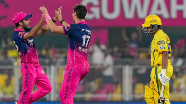 குவாஹாட்டி பர்சாபரா கிரிக்கெட் மைதானத்தில் திங்கட்கிழமை (30) நடைபெற்ற ஐபிஎல் போட்டியில் சென்னை சுப்பர் கிங்ஸை 127 ஓட்டங்களுக்கு சுருட்டிய ராஜஸ்தான் ரோயல்ஸ், 7.5 ஓவர்கள் மீதமிருக்க 8 விக்கெட்களால் இலகுவாக வெற்றி பெற்றது. முதலில் துடுப்பெடுத்தாடிய சென்னை அணி 19.4 ஓவர்களில் சகல விக்கெட்களையும் இழந்து 127 ஓட்டங்களை மட்டுமே பெற்றது.
