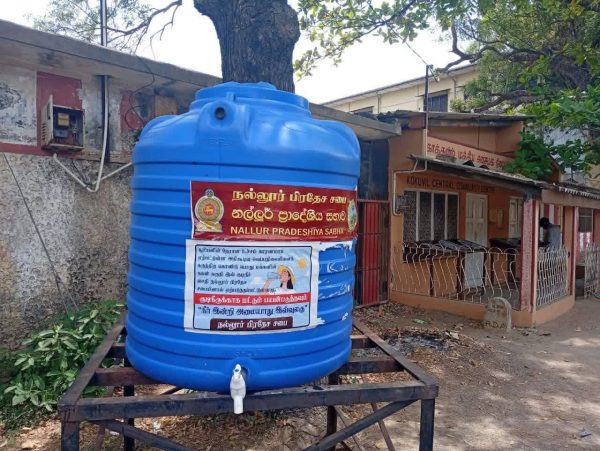யாழ்ப்பாணத்தில் தற்போது நிலவும் கடும் வெப்பம் மற்றும் சூரியனின் நேரான உச்சம் காரணமாக பொதுமக்களின் நலன் கருதி, நல்லூர் பிரதேச சபையினால் விசேட குடிநீர் விநியோகத் திட்டம் சாக்கினாலான நிழல் பந்தல் அமைக்கப்பட்டுள்ளது