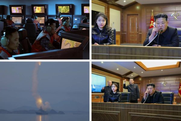 Korean Central News Agency வெளியிட்ட படங்களில், ஒரு மாநாட்டு அறையில் அமர்ந்திருந்த இருவரும், ஒரு திரையில் Choe Hyon என்ற போர்க்கப்பலில் இருந்து ஆயுதங்கள் ஏவப்படும் காட்சிகளை பார்ப்பது காட்டப்பட்டுள்ளது.