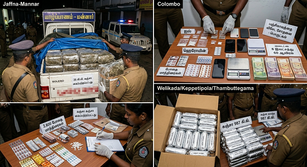 நாட்டின் பல்வேறு பகுதிகளில் விசேட சோதனைகள் – பெருமளவு போதைப்பொருட்களுடன் பலர் கைது.!!