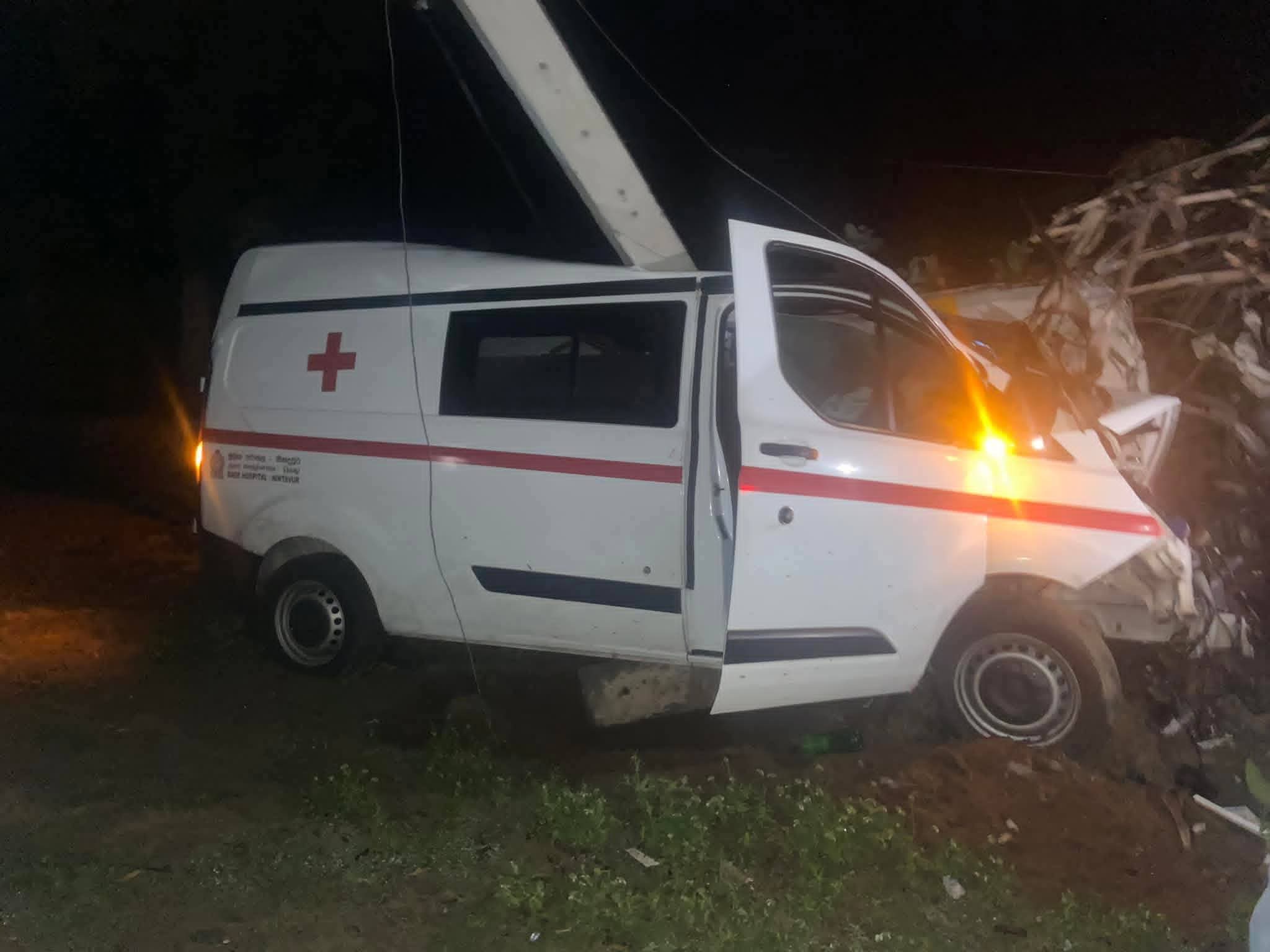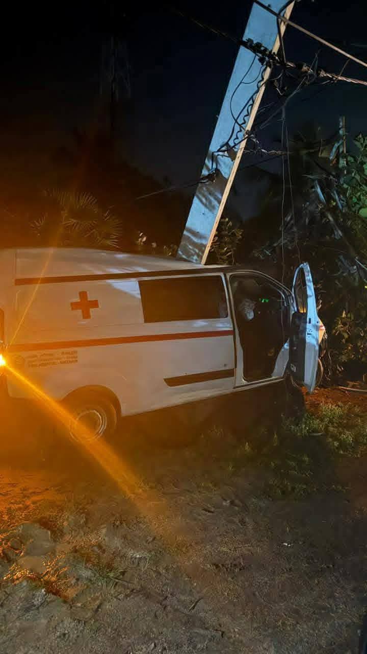 ஆம்புலன்ஸ் கட்டுப்பாட்டை இழந்து மின் கம்பத்துடன் மோதியதில் இவ்விபத்து ஏற்பட்டது இந்தச் சம்பவத்தில் உயிர் சேதங்கள் எதுவும் ஏறபடவில்லை.