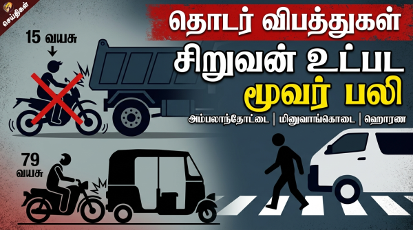 மினுவாங்கொடையில் வீதியைக் கடக்க முயன்ற பாதசாரி மீது வேன் மோதியதில் அவர் உயிரிழந்தார்; அவரது அடையாளம் இதுவரை உறுதிப்படுத்தப்படவில்லை, சாரதி கைது செய்யப்பட்டுள்ளார். ஹொரண பகுதியில் மோட்டார் சைக்கிள், முன்னால் சென்ற முச்சக்கர வண்டியை மோதியதில் 79 வயதுடைய முதியவர் சிகிச்சை பலனின்றி உயிரிழந்தார்.