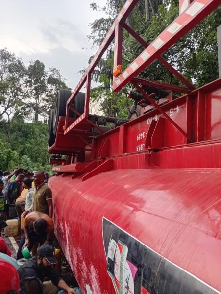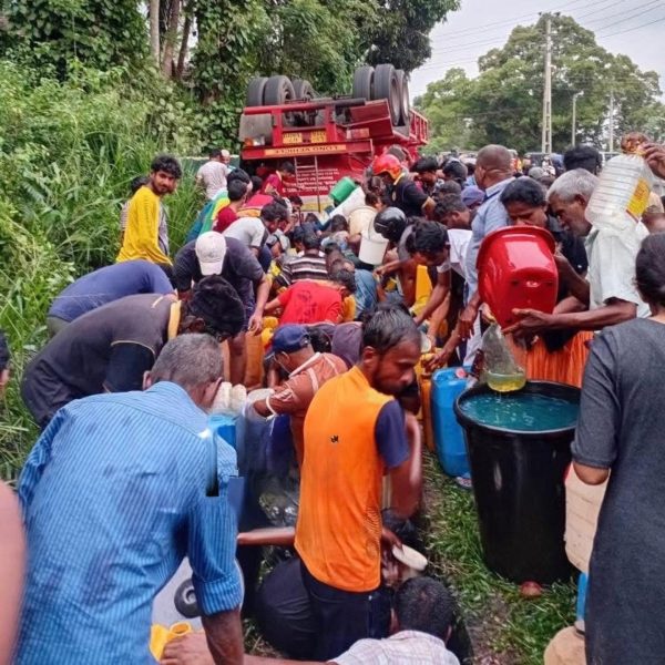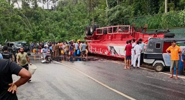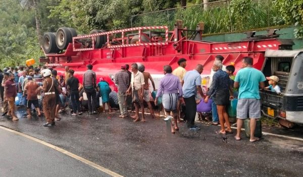 பதுளை–கொழும்பு வீதியில் எரிபொருள் பௌசர் விபத்து: வெளியேறிய எரிபொருளை அள்ளிச் சென்ற பொதுமக்கள்.!