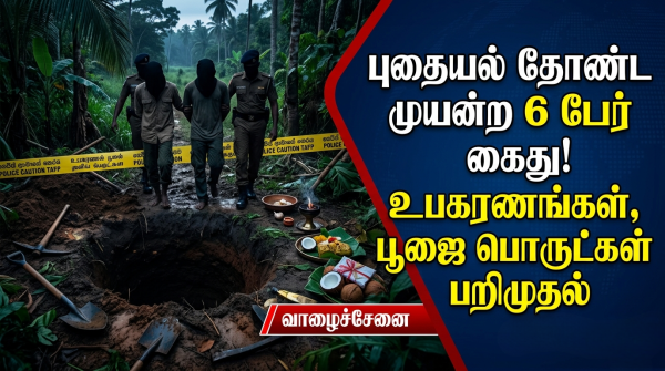 புதையல் தோண்டும் முயற்சி: 6 பேர் கைது, உபகரணங்கள் பறிமுதல்.!!