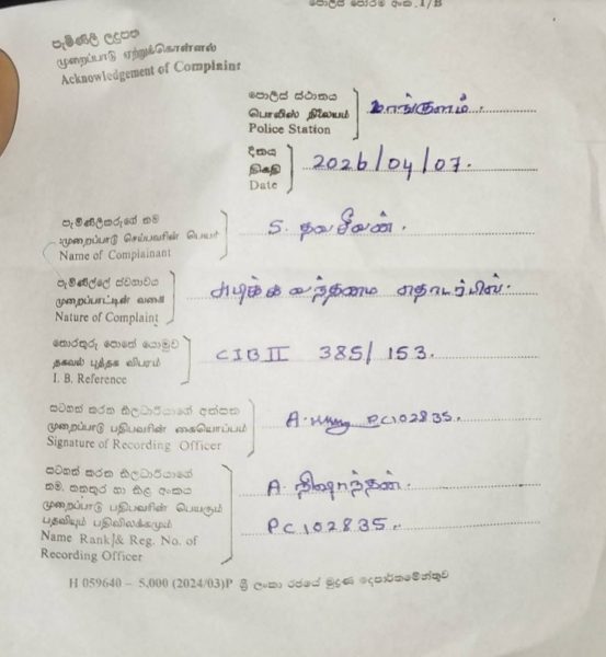 மேலும், வட மாகாண சிரேஷ்ட பிரதி பொலிஸ் மா அதிபருக்கும் குறித்த விடயம் தெரிவிக்கப்பட்டது.