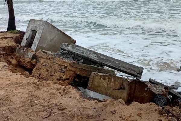 பருத்தித்துறை தும்பளை கிழக்கு பகுதியில் உள்ள மூர்க்கம் கடற்கரையில் அமைக்கப்பட்ட சிறுவர் பூங்கா, கொங்றீட் வீதி, சீமெந்து இருக்கைகள், நடைபாதை உள்ளிட்ட நிரந்தர கட்டுமானங்கள் அத்தனையும் கடற்கொந்தளிப்பில் அள்ளுண்டு போய் அழிவடைந்துள்ளன.