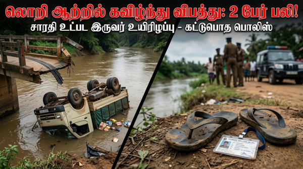 லொறி ஆற்றில் கவிழ்ந்து விபத்து: சாரதி உட்பட இருவர் உயிரிழப்பு.!!