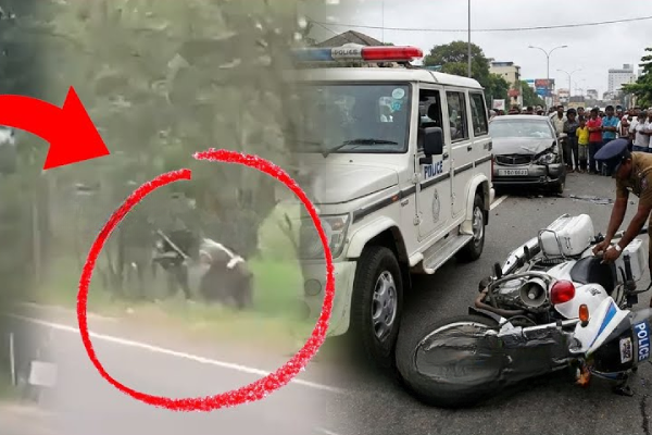 வாகனத்தில் மோதுண்ட பொலிஸார் வீதியோரமாக மோட்டர் சைக்கிளுடன் விழுந்துள்ளதுடன் சிறிய காயங்ளுக்கும் உள்ளாகியுள்ளனர்.