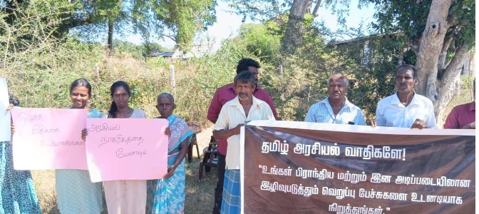 வவுனியா பிரமனாலங்குளத்தில் தமிழ் அரசியல்வாதிகள் பிராந்திய மற்றும் இன அடிப்படையிலான இழிவுபடுத்தும் வெறுப்புப் பேச்சுகளை உடனடியாக நிறுத்த வேண்டும் எனக் கோரி ஆர்ப்பாட்டம் ஒன்று நடத்தப்பட்டது. இந்த ஆர்ப்பாட்டம் அப்பகுதி மக்களால் வெள்ளிக்கிழமை இடம்பெற்றது.