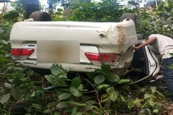 100 அடி பள்ளத்தில் கவிழ்ந்த கார்; சாரதியின் உறக்கத்தால் விபரீதம்